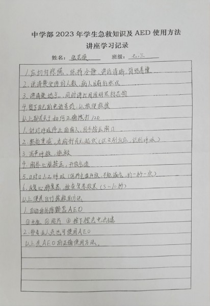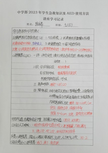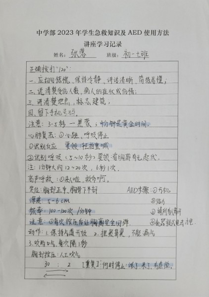 ——记中学部 2023 年学生急救知识及AED 使用方法讲座