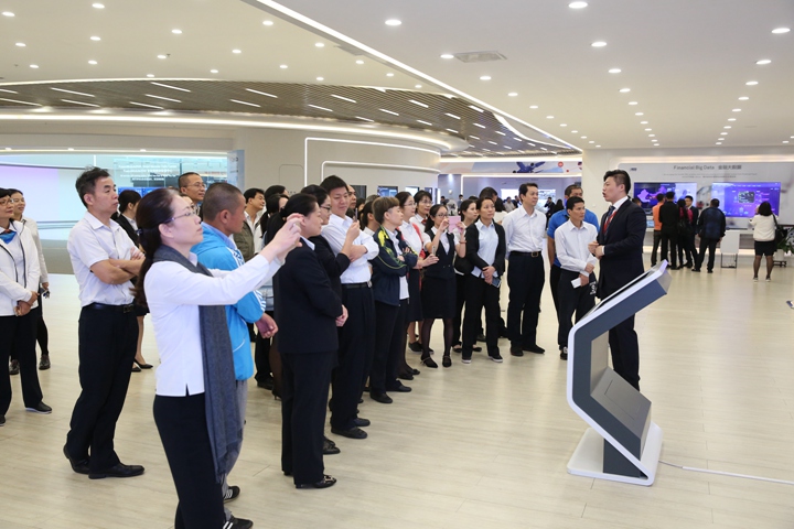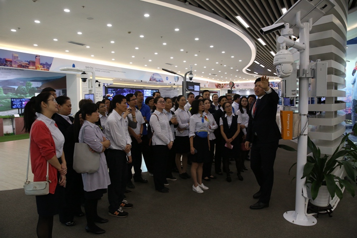 中学部的党员、教师跟随华为接待人的引导,首先参观了华为的功能展厅,了解了华为创新的ICT产品和解决方案,直观地感受了未来智慧城市、平安城市的面貌,解了智慧与科技在各行各业应用的情况,感受到科技给生活带来的便利,惊叹于科技的强大和智慧的无处不在。