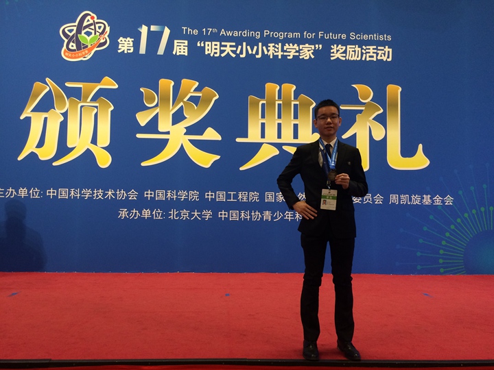 中学部高三游江山同学荣获“明天小小科学家”奖