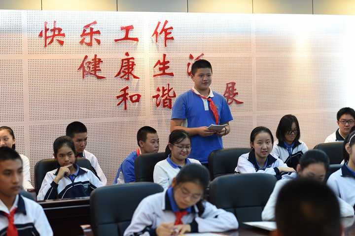 “校长见面日”是中学部的特色活动之一,连续举办了8年,学校一直在积极探索学生自主管理的模式,搭建师生与领导的对话平台,鼓励同学们积极参与学校事务,加强自主管理,积极建言献策,参与建设美丽、安全、和谐校园等方面发挥主人翁作用,深得同学们的喜爱。(文/初三6班康乐儿 图/电教室)
