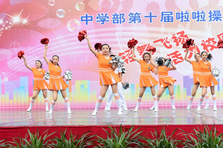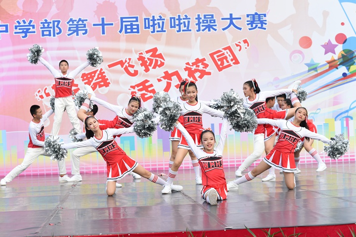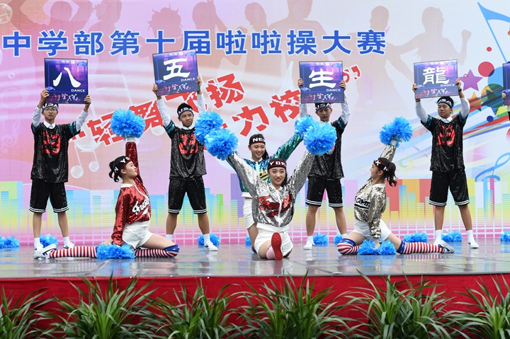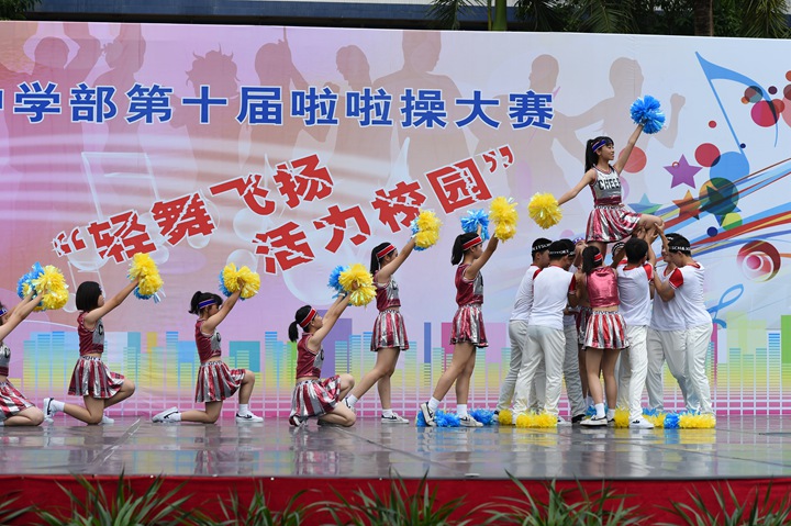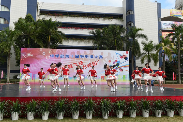 11月29日下午,“轻舞飞扬 活力校园”第十届啦啦操大赛伴随着动感的音乐,在中学部全体师生的期待中拉开了帷幕。非毕业年级共24个班级的选手依次登场,为运动健儿们加油助威。本次是中学部第十届啦啦操大赛,同学们在轻快音乐声中,摆出了一个个意味着“十”的动作,展示出了朝气蓬勃,青春活力,动感十足的精气神。不管是动作的构思,还是音乐的挑选,都体现了我校学生较高的啦啦操艺术水品。本次比赛筹备时间短,为了能够在比赛中取得的更好的成绩,参赛同学以及指导老师,放弃了午休以及课外休息时间,进行系统的训练,不畏辛苦,勤奋苦练。台上同学舞步悦动,台下同学也不甘示弱,助威棒碰撞发出的砰砰声,应援呐喊助威声交织在一起,奏出了阳光下最美的乐章。