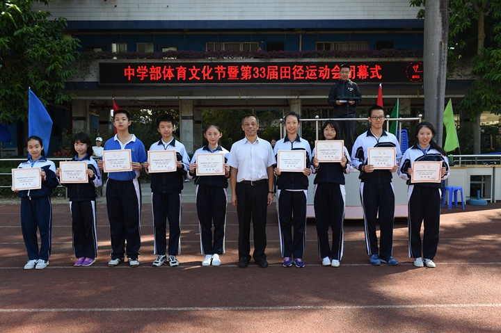 11月30日上午,中学部第33届田径运动会开幕式隆重举行。衷敬高校长、黄汉波副校长、集团教育教学部主任郭志鸿、高中部部主任程学军、小学部部主任顾兵、初中部副部主任邓旭、坂田部副部主任吴立刚、小学部学生处主任杜益明、初中部学生处主任张楠等领导纷纷到场,部分家长代表也应邀参加了开幕式。开幕式由中学部学生处杨光主任主持。