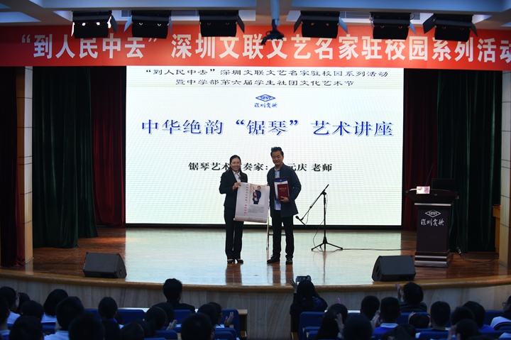 为了丰富校园生活,增强对中国优秀传统文化的了解与认识,营造健康文明、活泼向上的校园文化,在社团文化节期间,高中部特别邀请到了著名锯琴艺术演奏家李元庆老师为师生带来一场精彩的艺术讲座。