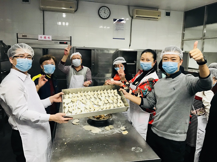 下午三时许,佩戴好防尘帽、卫生口罩的各工会小组成员们来到食堂后厨,组织成一支“包饺子”流水线,切菜、活馅儿、揉面、擀皮……,共同为迎接新年准备着丰盛的饺子宴。