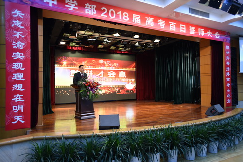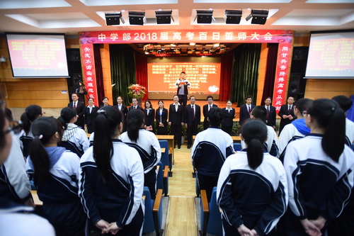 如果说十二年的求学路是长征,未来一百天就是迈向胜利的最后一段路;如果说高考是翻越高山,未来一百天就是最后一段陡峭山路。百日誓师日,是中学部全体高三学子向最后的考验发起冲击的起点。为了振士气、燃激情,我们在百日誓师这一天,沙场点兵,挥师进发。