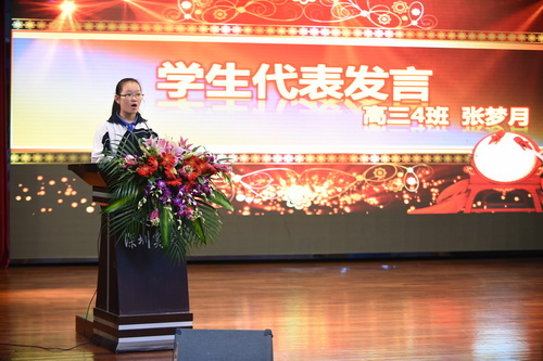 高三(4)班张梦月同学首先代表全体高三学生表决心。奋斗是辛苦的,过程的辛苦才能换来结果的甘甜;求学是艰难的,只有克服困难才能磨练意志又丰满人生。学生代表的发言,展现了中学部学子的能力才华,又展现了高三学子的坚强和笃定。