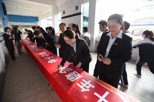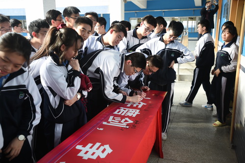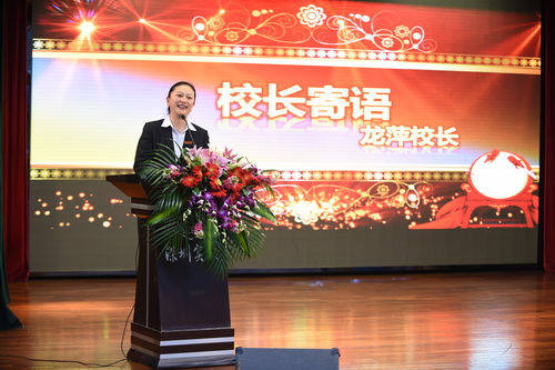 校长的寄语。龙校长也到会场为高三师生鼓劲,加油。她看到高三慷慨激昂的师生,听到师生铿锵有力决战高考的坚定决心和美好的愿望,心潮澎湃!在她的讲话中,强调了最后一百天的主旋律就是两个字——拼搏。她激励高三学子珍惜青春,在青春年华拼博奋斗,在最后的百天,拼尽全力,不负春光,不负自己,给自己的人生留下了值得炫耀的一笔!龙校长的讲话温暖而坚定,让全体师生汲取到力量,更感受到在场的所有人是一家,大家将肝胆相照,荣辱与共,齐心协力,决不放弃。