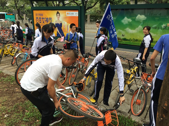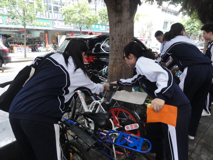 记中学部“学雷锋精神—我们在行动”共享单车整理摆放志愿服务活动