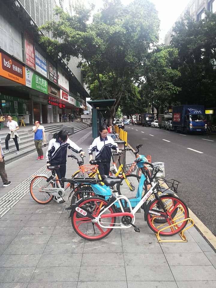 同学们还向途经的市民派发事先印制好的做文明骑行使者宣传单,向他们介绍我们此次活动及共享单车或平时使用的一些注意事项。期间,一些外国朋友们好奇地询问我们这次活动,同学们热情洋溢的回答。一些同学拿着相机,记录下一位位认真整理单车同学们,一个个积极向路人宣传活动排放传单的身影,一张张带着汗水却又洋溢着灿烂笑容的笑脸,记录下这段很有意义的时光。