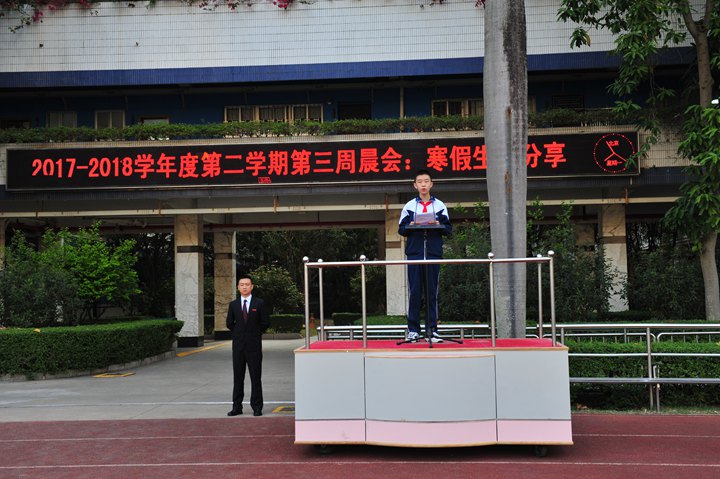 3月12日晨会以“寒假活动分享”为主题开展。初一8班成汶骏同学做了《与爱同行,心存感恩》发言。非毕业年级举行《实践文明 提升自我》寒假活动图文展,与广大师生进行分享、交流。