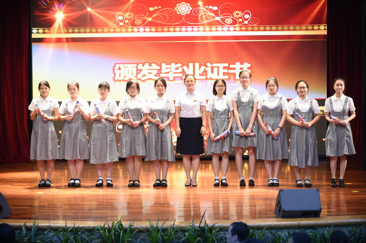 随后,教务处王兵主任和学生处杨光主任分别宣读了《关于学校准予高三学生毕业的决定》和《关于高三年级优秀毕业生的表彰决定》。龙校长为高三年级的学生一一颁发了毕业证书。