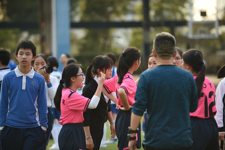 当天下午还进行了女生第一轮的比赛,赛场上女同学们奋力奔跑、精彩闪躲、漂亮过人、迅速出击,时刻牵动着场下学生的心!在接下来的两周内,各年级的同学们都将全面参与到“校长杯”足球赛中,去学习足球知识和技能,感受足球带来的快乐,真正爱上足球!
