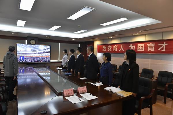 3月4日下午和3月5日上午,备受瞩目的全国政协十四届二次会议、十四届全国人大二次会议隆重开幕。中学部党总支提前印发通知,组织党员、积极分子、团员通过电视、互联网、手机直播等形式收听收看全国“两会”实况。同时安排没有教育教学任务的党员、积极分子在北401党员活动室集体观看两会开幕式直播,认真学习全国两会精神以及国家的方针政策,感受团结、和谐、奋进的新时代脉动。