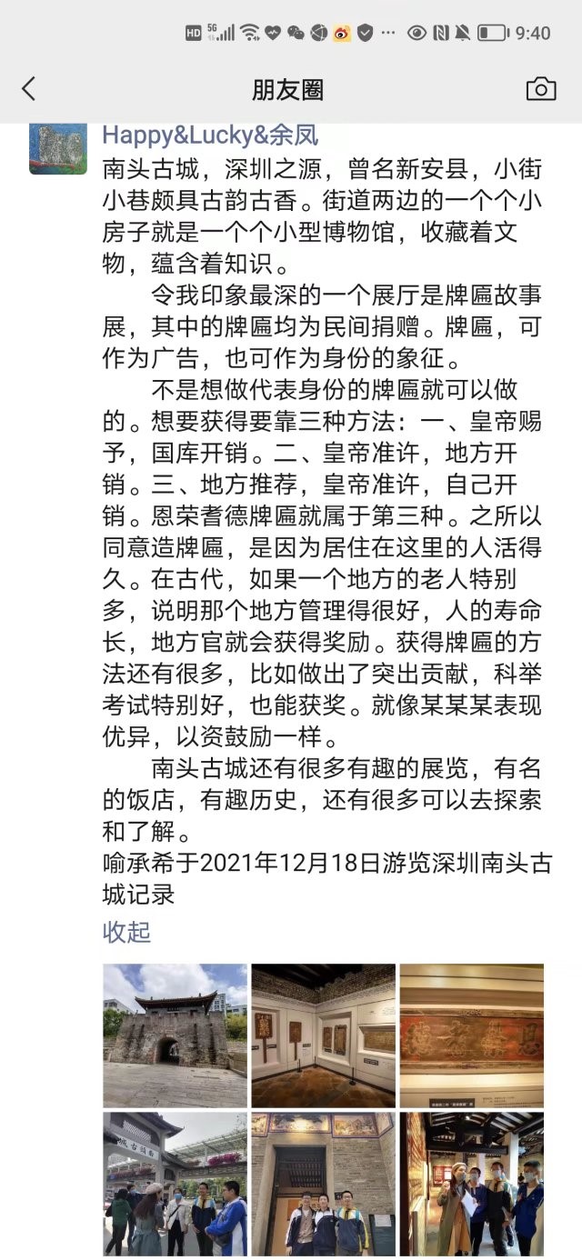 中学部历史学科组通过开展17场《趣游博物馆》系列和《深圳故事 今古传奇》系列活动,开启博物研学之旅,融入深圳地域文化,拓宽了学生的视野,提升了学生的历史学科素养。“双减”之下,历史学科的教育教学也要因应新形势、新要求。伴随着新政策的落地生根,中学部历史学科组本着对历史教与学的再认知,思考与行动始终在路上。(文/张明燕 素材提供/张明燕 统筹/教务处)