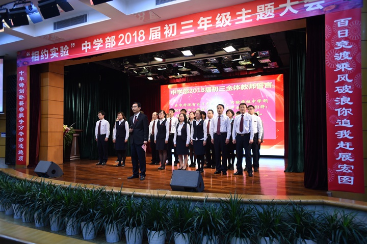 3月15日下午,中学部初三年级在五楼小礼堂举行了“相约实验”主题年级大会,学校领导和初三年级全体师生参加了大会。