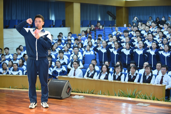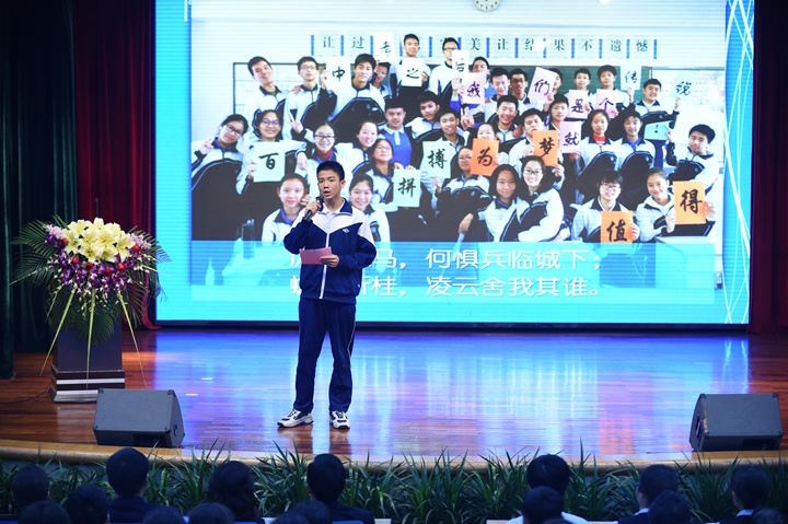 年级主任潘浩老师作为教师代表也为同学们送上温馨的祝福,教导我们如何迎接未来的挑战。他祝愿同学们在最后的日子里,坚定“天生我材必有用”的信心,拿出“吹尽黄沙始到金”的毅力,怀抱“直挂云帆济沧海”的豪情,收获属于自己的成功,谱写新的篇章。潘老师的殷切期待和关爱,引起了强烈的共鸣,场上响起阵阵热烈掌声。