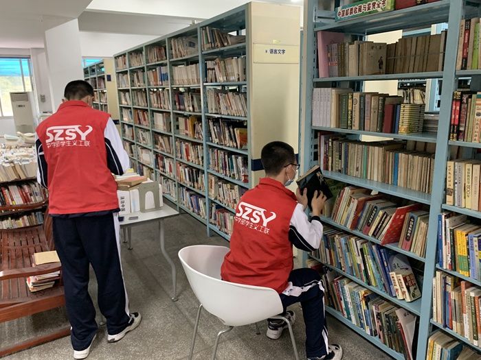 中学部三楼阅览室书架上,新添一组码放整齐的书籍,微微泛黄,显出年深日久的岁月痕迹。这些书,是深圳大学退休教师赵尉杰教授向我校捐赠的书籍。