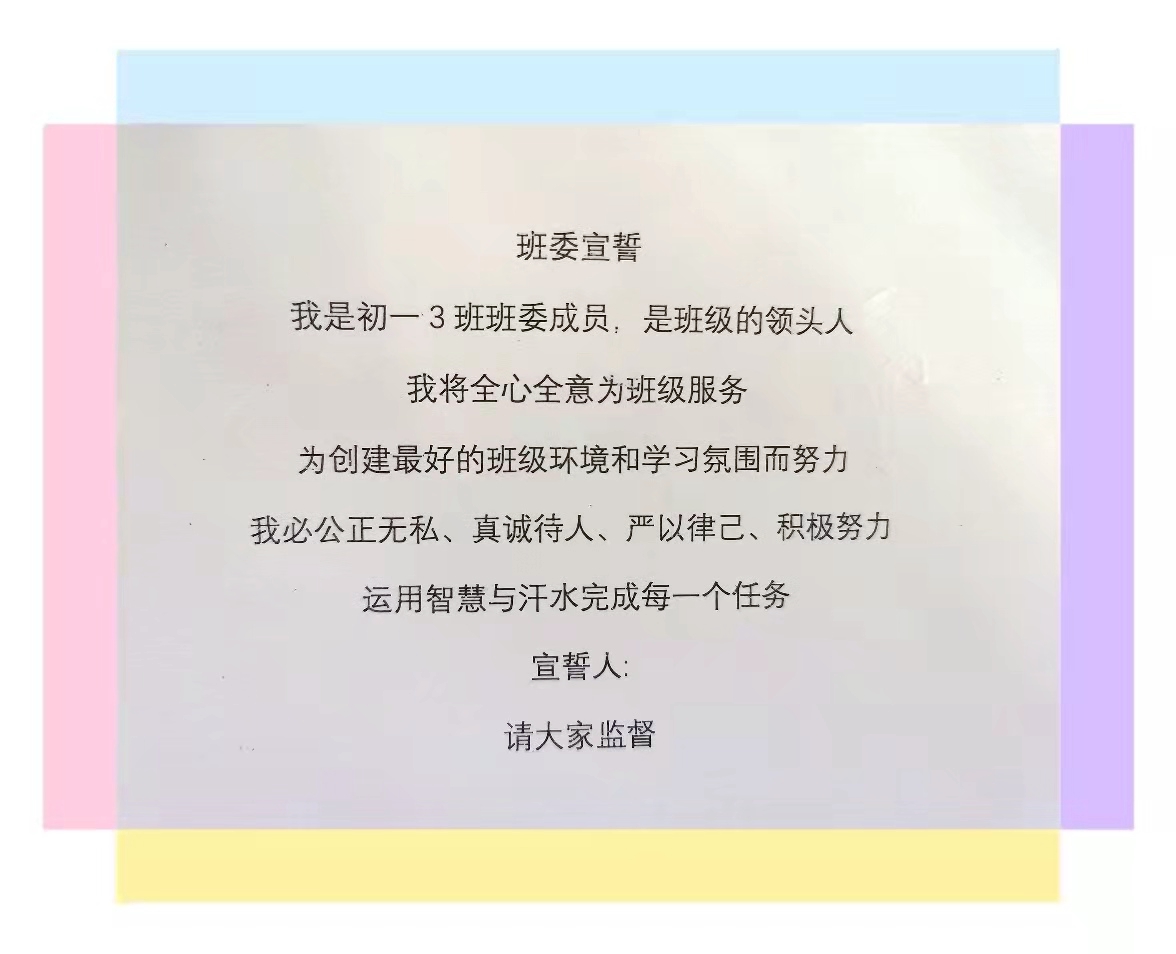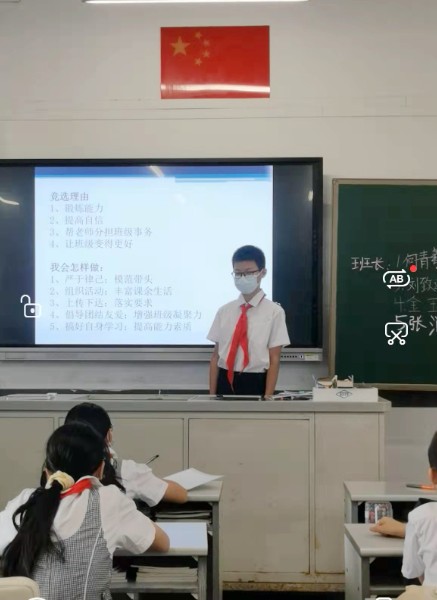 【班干部竞选】在经过一段时间的接触和观察,师生之间、生生之间增进了相互了解。班主任老师鼓励同学们积极参与班干部竞选,发挥主人翁精神,主动承担班级事务。参加竞选的同学精心准备竞选稿,反复演练,在竞选中自信大方,认真坦诚,表明参加竞选的原因和今后的行动。经过学生投票、老师合议,各班都成立了新的班委,班级气象焕然一新。