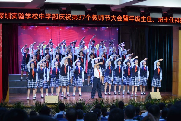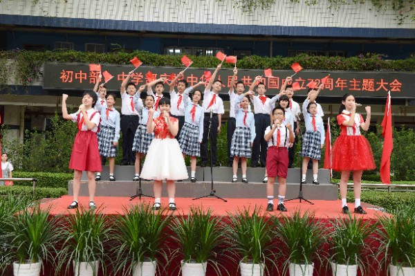 【感恩教育】“感恩教育”是我校健全人格教育的重要组成部分。对于今天的广大青少年来说,感恩更是责任意识、自立意识、自尊意识的体现。拥有一颗感恩的心才更加热爱祖国珍惜当下;才更能体会父母的不易和师长的用心,更懂得去关心帮助他人,更会勤奋学习,主动求知。中学部初一年级利用大型活动和班会时间,抓住契机渗透感恩教育。在第37个教师节庆祝大会暨年级主任、班主任拜授仪式上,初一年级的大合唱《奉献》,表达了他们对师长的敬佩和感恩。在庆祝中华人民共和国成立72周年主题晨会上,初一年级少先队员合唱歌曲《名字叫中国》,表达了师生对伟大祖国的热爱,更唱出了孩子们的感恩之心。