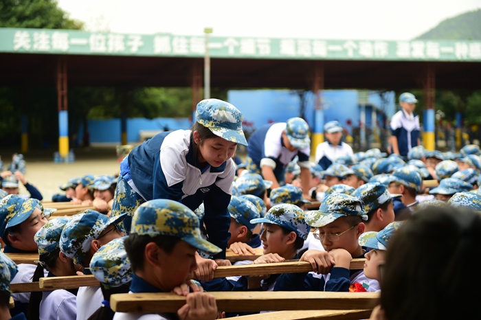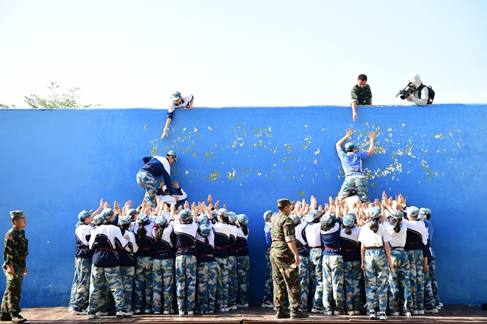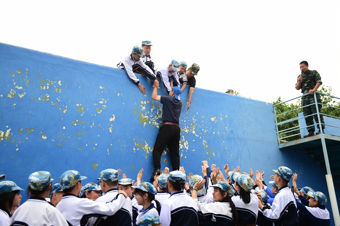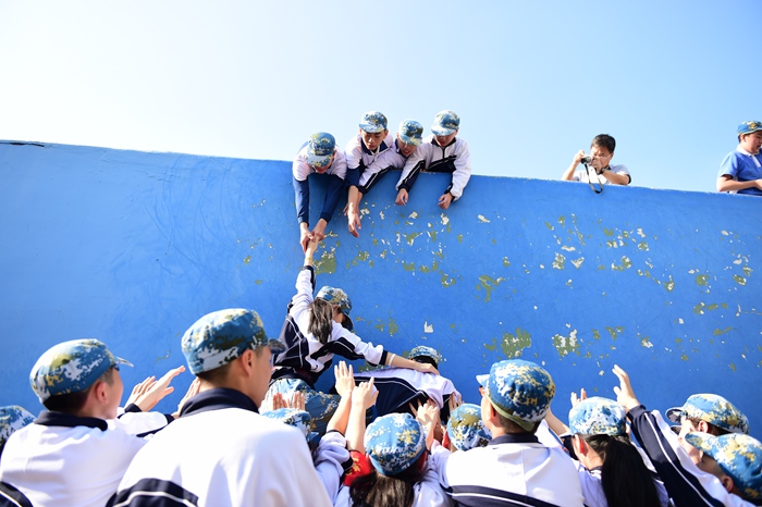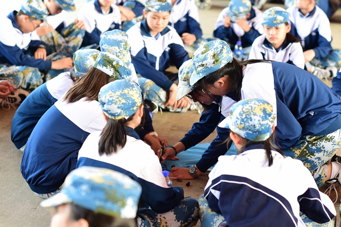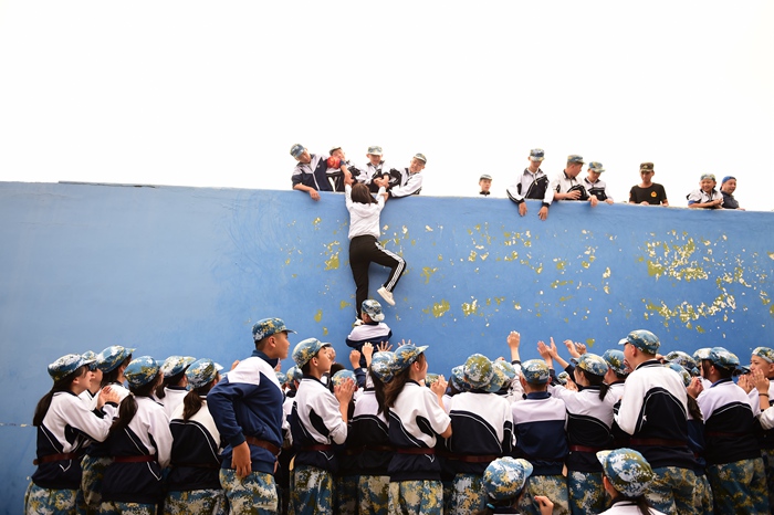 有人说,训练就是品尝苦辣酸甜;有人说,训练就是体味身心铸造。其实,训练还是一块儿磨刀石,让我们砥砺成长。过浮桥,44双肩膀,88道伤痕,却依然在泪眼朦胧中喊出“加油”的震天声响;翻过成功墙,站桩蹲桩,用自己的身体帮助同学翻越“成功墙”,皮肤虽然划破,但有磨练中的成长,意志更加顽强。练队形,展示班级文化,各个班级的三角队形、笑脸队形、向日葵队形、同心圆队形、时钟队形,或活泼可爱,或稳健向上,或昂扬奋发,将一颗颗悸动的心,连在了一起。