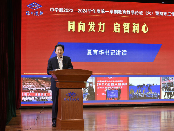 深圳实验学校党委夏育华书记全程参加了活动,他对中学部进行了高度的评价:活动有声有色,师生同心同德,分享可心可乐,学习育心育脑,生活有滋有味。他也希望中学部能够在杨宁主任的带领下,全体教师同向发力,不断进取,传承实验精神,擦亮实验品牌。(文/靳军强 图/罗宏才)