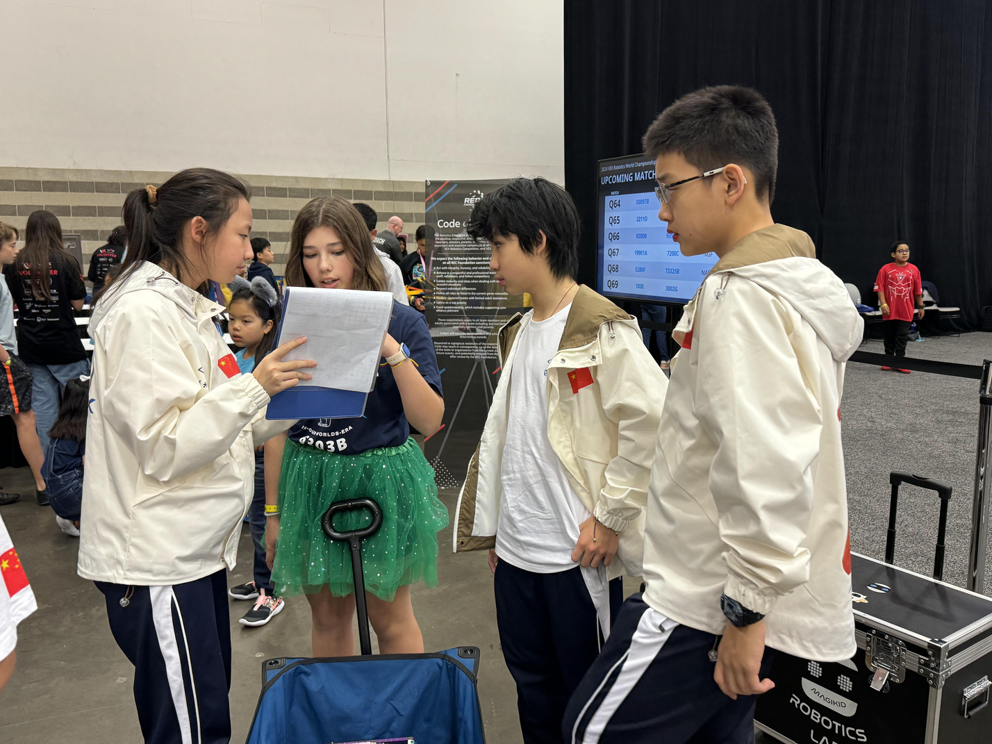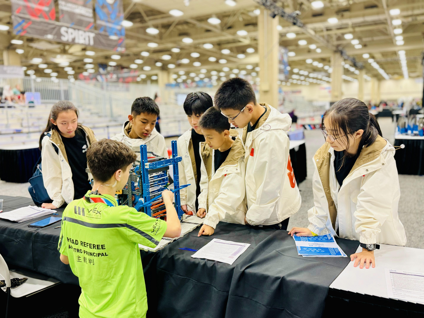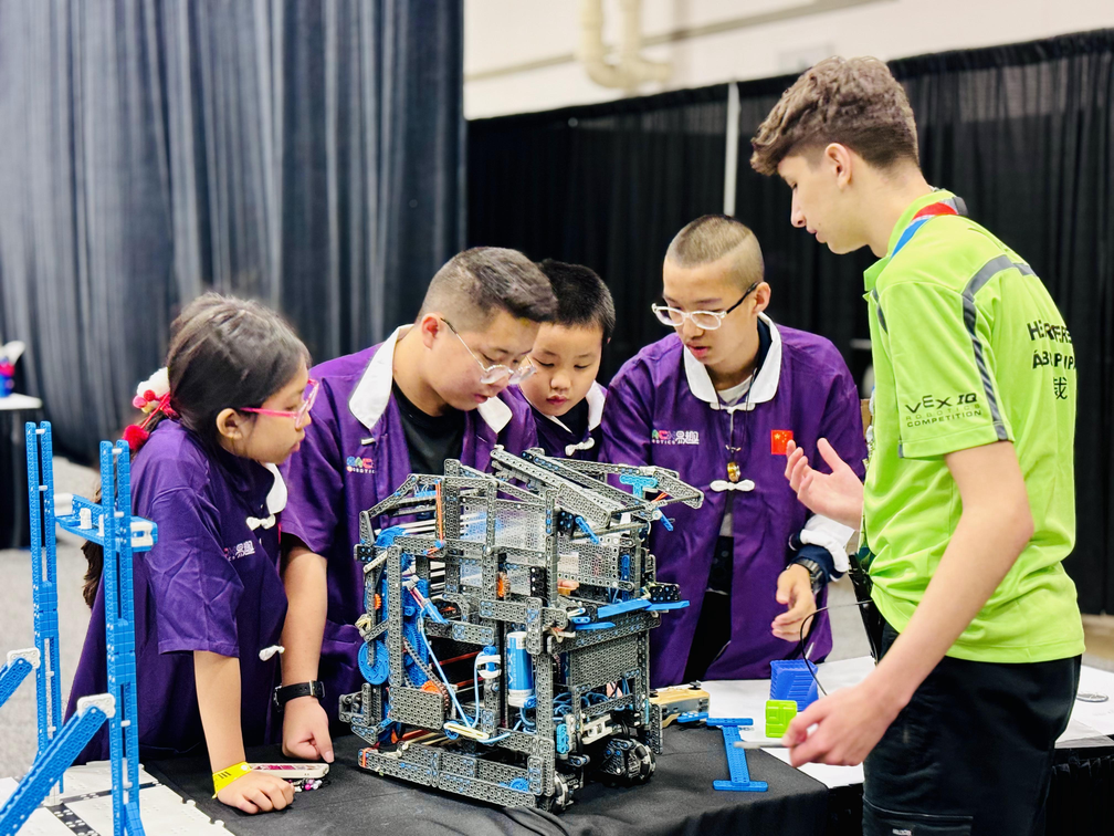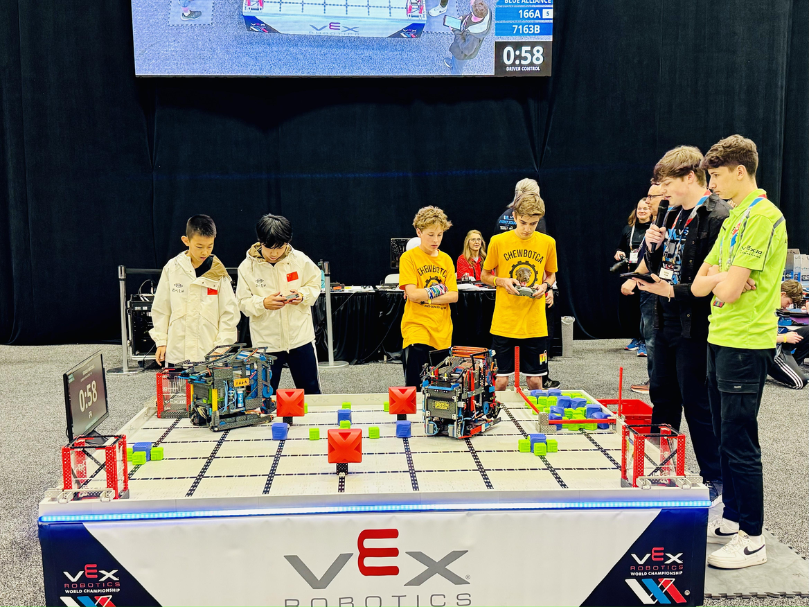 2023-2024赛季VEX机器人世界锦标赛盛况空前,据官方发布的数据统计,此次赛事汇集了来自全球60多个国家地区的两千多支优秀队伍,在为期10天的竞赛中,为观众呈现了一场机器人竞技的盛宴。其中,初中组VEX IQ项目2023-2024赛季VEX机器人世界锦标赛盛况空前,据官方发布的数据统计,此次赛事汇集了来自全球60多个国家地区的两千多支优秀队伍,在为期10天的竞赛中,为观众呈现了一场机器人竞技的盛宴。其中,初中组VEX IQ项目共有412支队伍参赛,竞争异常激烈。我校两支代表队紧密协作,克服时差与语言等多重困难,积极与世界各地的顶尖队伍交流战术与策略,成功从10场高强度的资格赛中脱颖而出,晋级分区决赛。在决赛中,队员们凭借合理的战术策略、出色的操控技术和默契的联队配合,最终分别获得分区赛亚军和第四名的优异成绩。