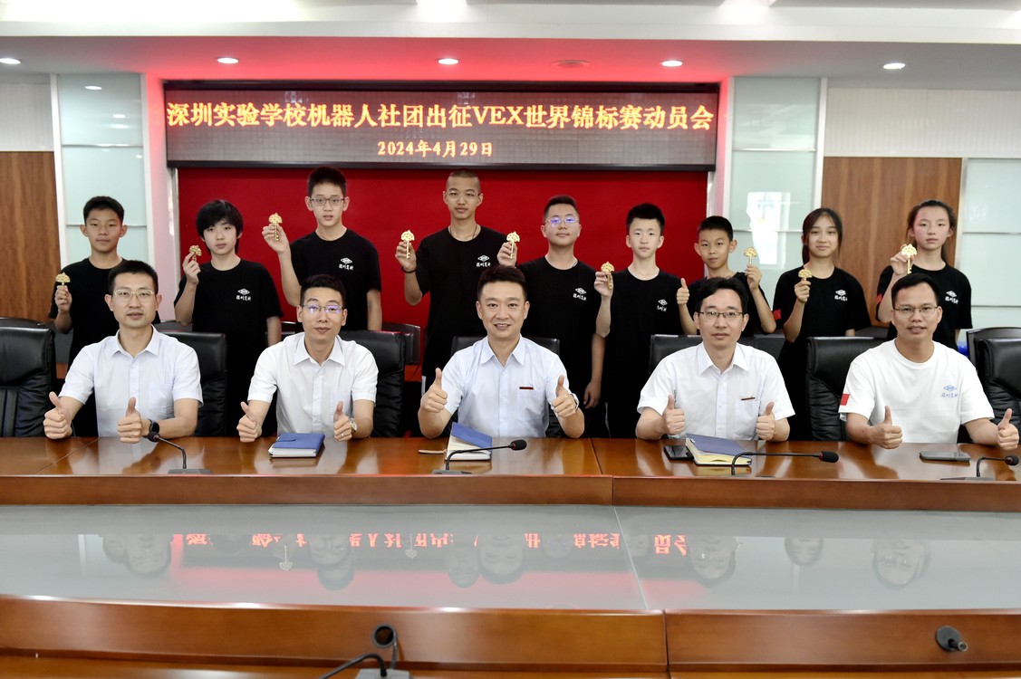 在备战此次世锦赛的过程中,曾繁均老师和机器人社团的队员们倾注了巨大的心血与努力。他们毅然放弃宝贵的休息时间,持续不断地优化机器人的设计细节、精进编程逻辑、并精心策划战术策略。同时,他们勤奋训练操控技术,积极磨合团队协作,以确保在比赛中能够展现出卓越的竞技水平,收获优异的成绩。学校领导的高度关注和全力支持,以及校内各部门的紧密协调与配合,为机器人社团师生们的成功备战提供了坚实的后盾。在出征世锦赛的动员大会上,杨宁执行校长、潘浩副部主任分别对参赛队员们进行了深刻的鼓励和指导,为他们注入了强大的信心和动力,使他们更加坚定地迈向胜利的征程。