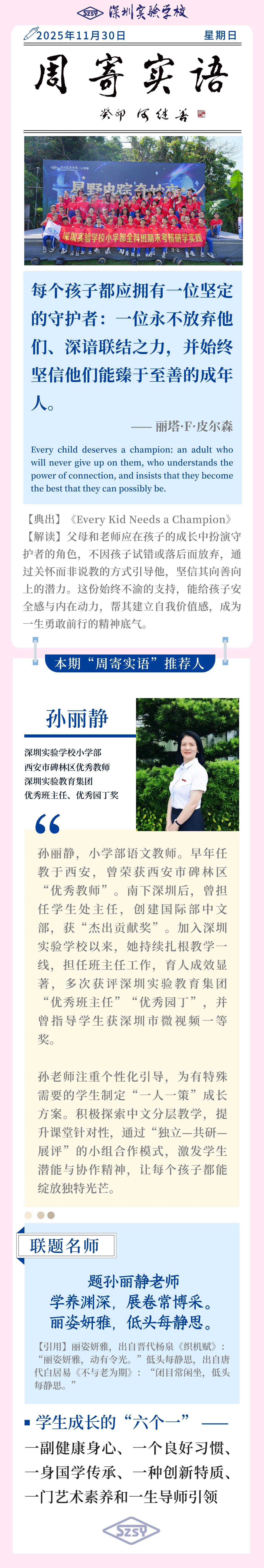 周寄实语 | 每个孩子都应拥有一位坚定的守护者:一位永不放弃他们、深谙联结之力,并始终坚信他们能臻于至善的成年人