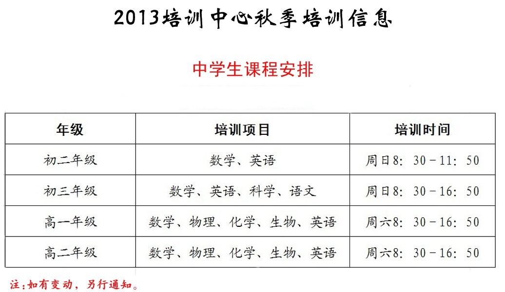 2013培训中心暑期培训信息